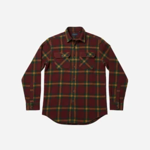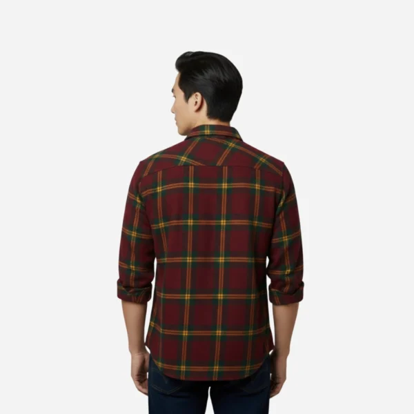 Distinctive Color Palette: Features a sophisticated plaid combining deep maroon, dark forest green, and striking gold/mustard yellow lines.