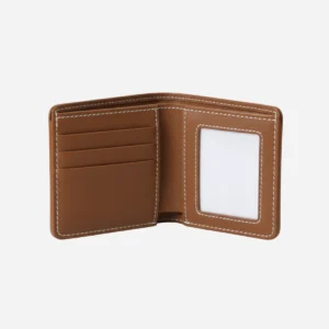 Its warm brown tone is complemented by precise white contrast stitching and a subtle leather brand patch, giving the wallet a premium yet understated look. Designed to be slim and practical, it easily fits into pockets while offering enough space for essential cards and cash.