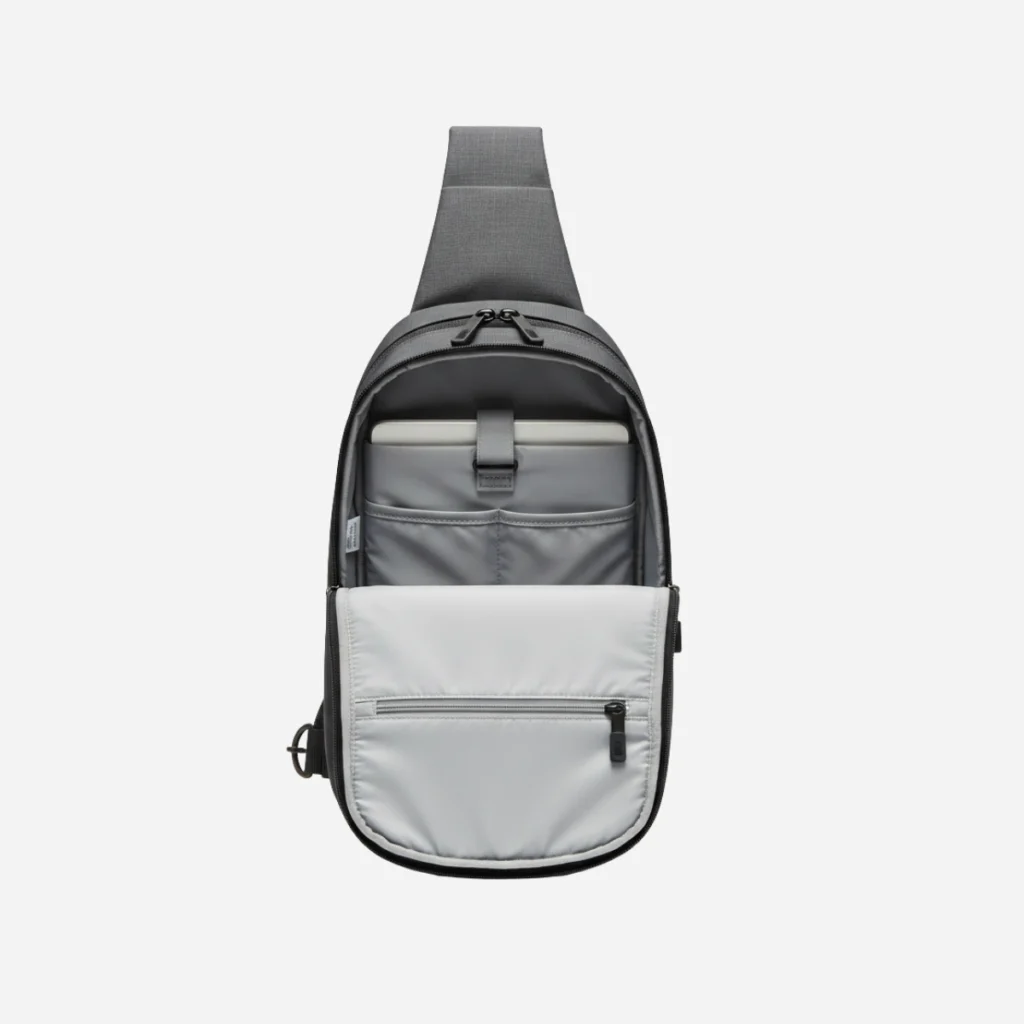 Smart Compartments: Features a main zippered pocket large enough for a tablet or small water bottle, plus multiple internal organizational sleeves.